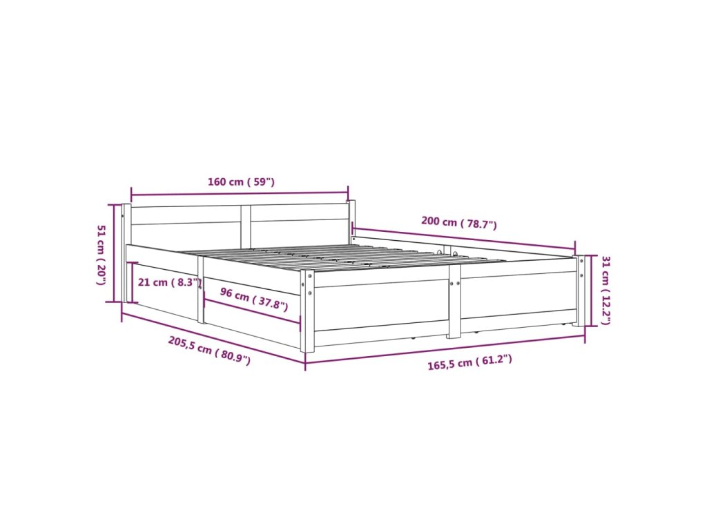 - Rozměry postele: 205,5 x 165,5 x 51 cm (D x Š x V)