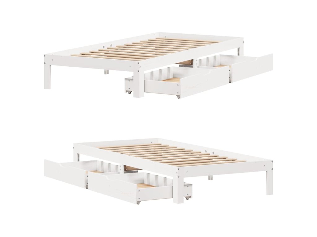 Rám postele se zásuvkami bílý 90 x 200 cm masivní borové dřevo 3301943