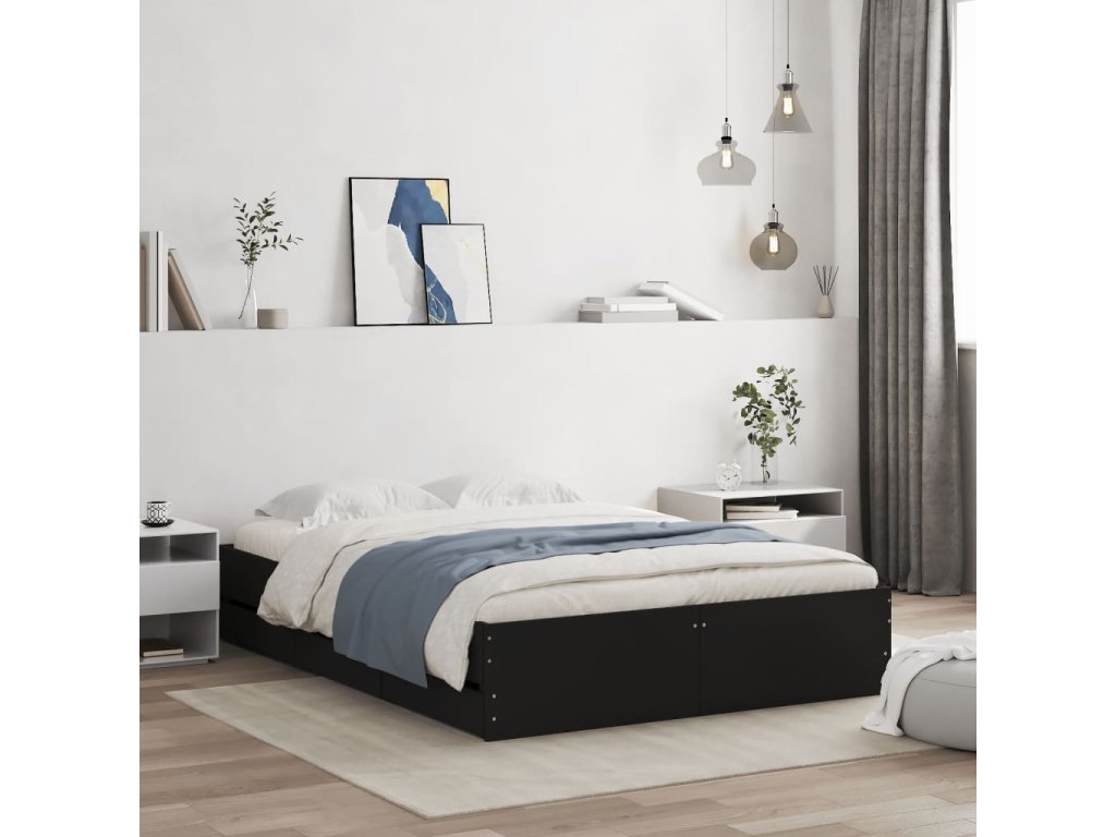 Rám postele se zásuvkami černý 135 x 190 cm kompozitní dřevo 3207309