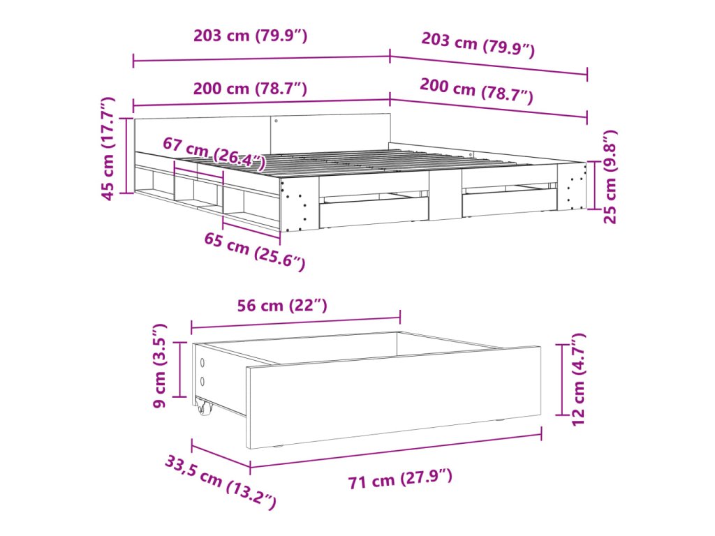 Rám postele se zásuvkami dub sonoma 200x200 cm kompozitní dřevo 3280722