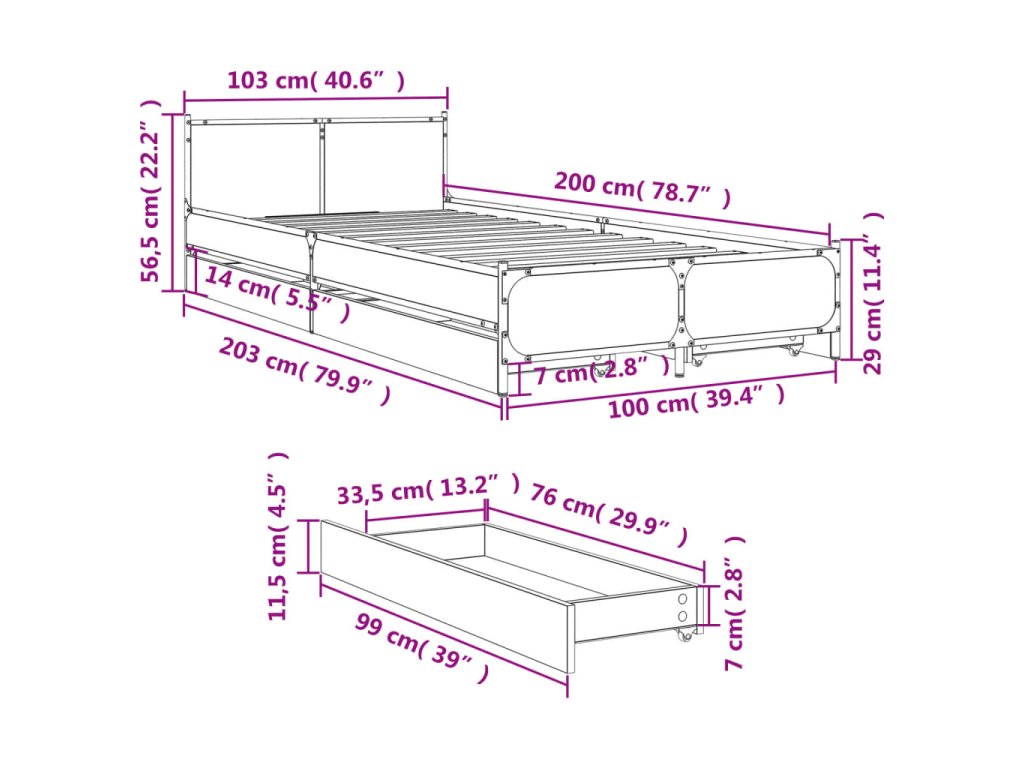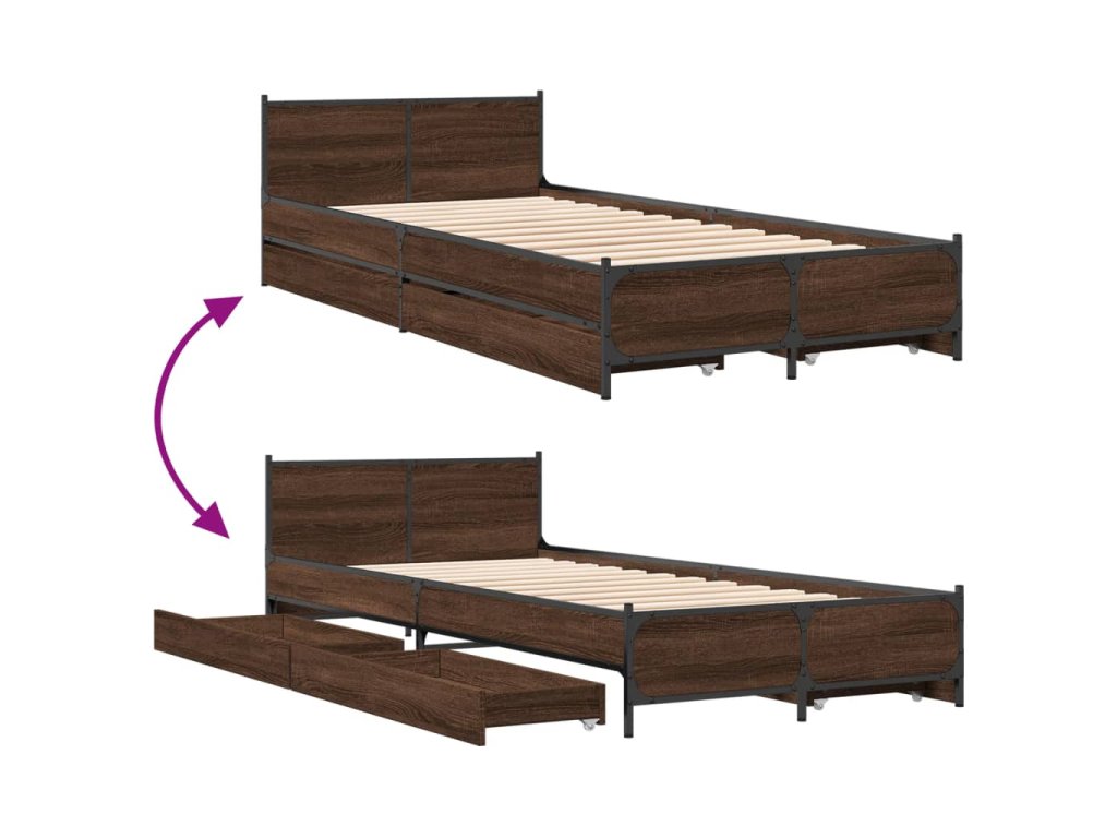 Rám postele se zásuvkami hnědý dub 100x200 cm kompozitní dřevo 3279966