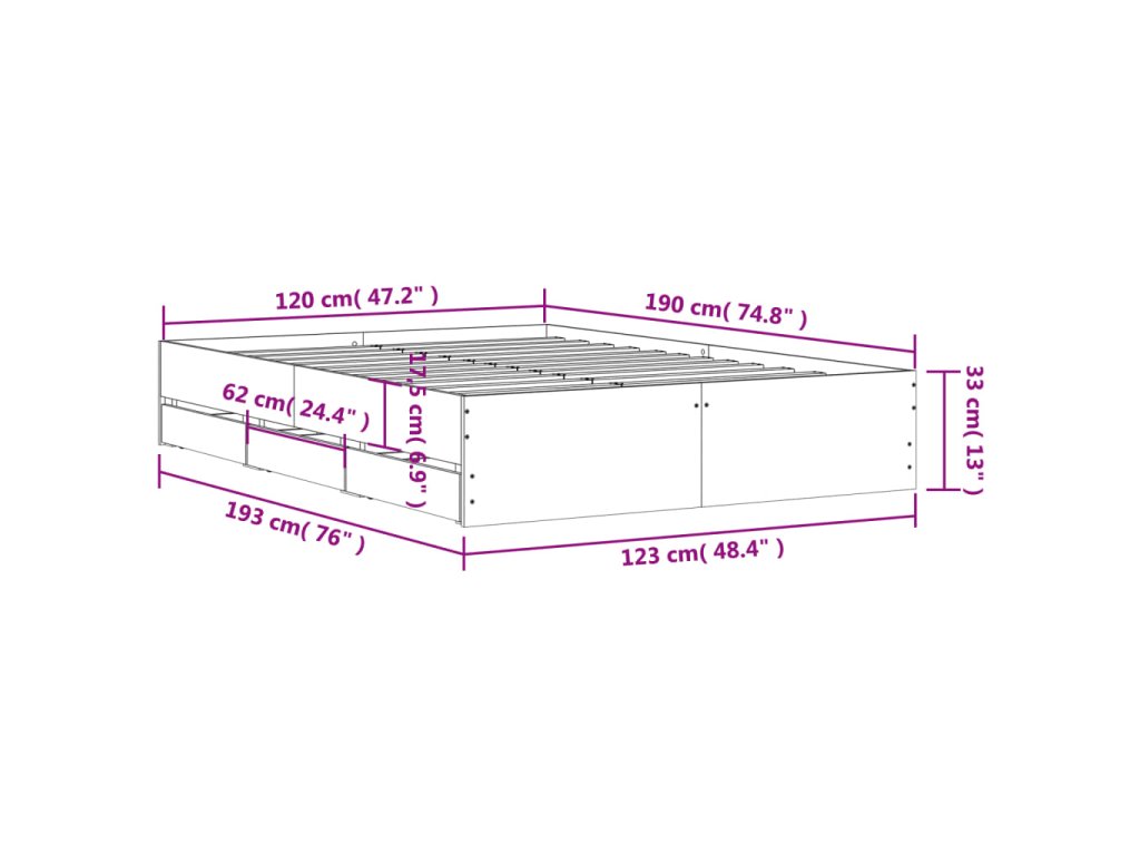 Rám postele se zásuvkami hnědý dub 120x190 cm kompozitní dřevo 3207321