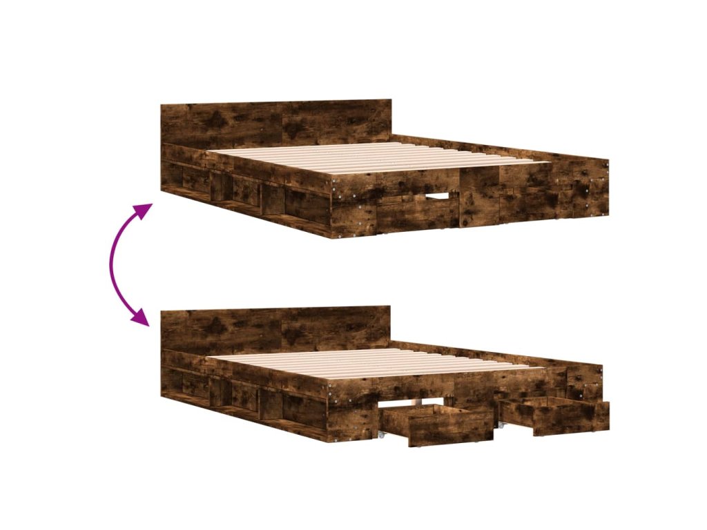 Rám postele se zásuvkami kouřový dub 140 x 200 cm kompozit 3280752