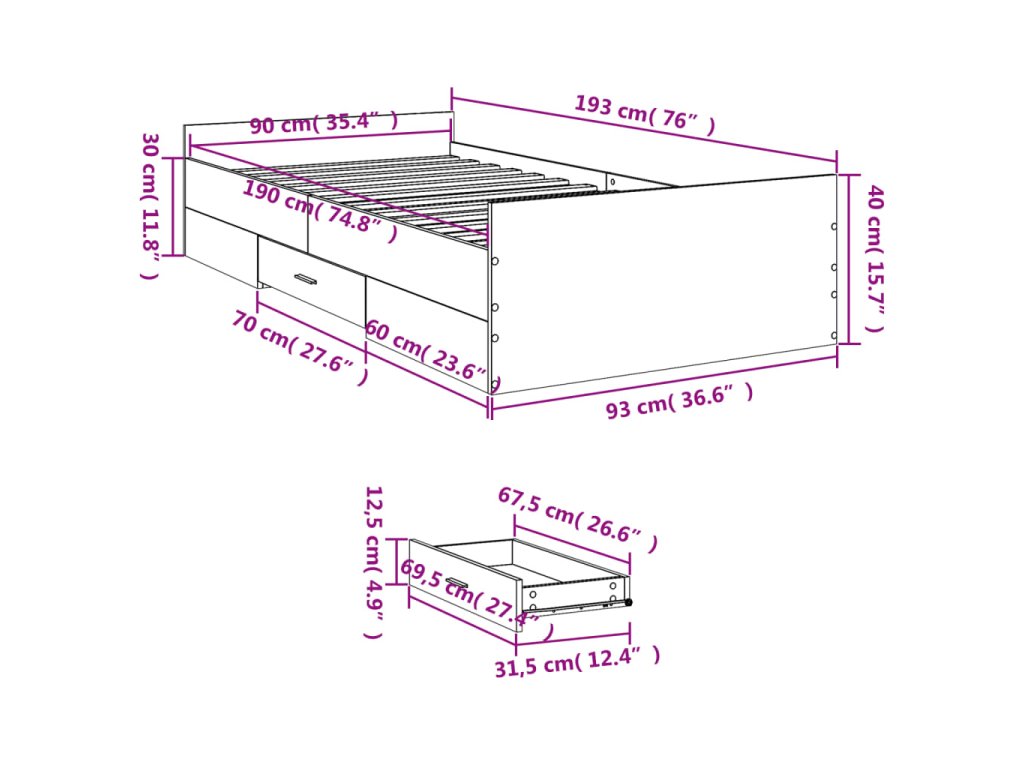 Rám postele se zásuvkami kouřový dub 90x190 cm kompozitní dřevo 3280346