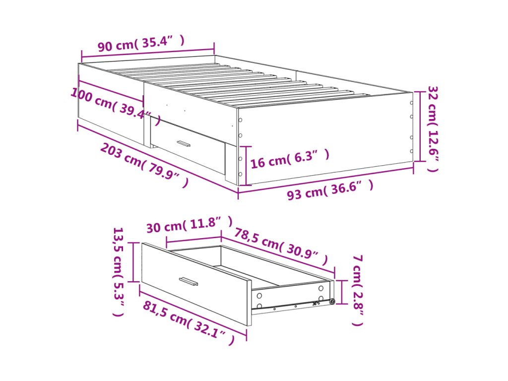Rám postele se zásuvkami kouřový dub 90x200 cm kompozitní dřevo 3280430