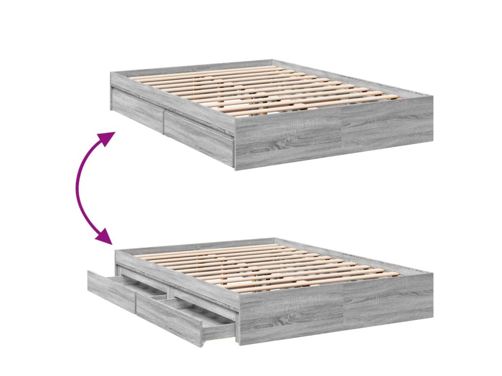 Rám postele se zásuvkami šedý sonoma 140 x 200 cm kompozit 3280662