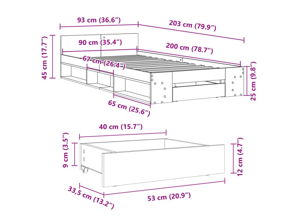 - Rozměry zásuvky pod postel: 53 x 33,5 x 12 cm (D x Š x V)