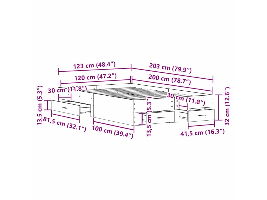 - Celkové rozměry: 203 x 123 x 32 cm (D x Š x V)