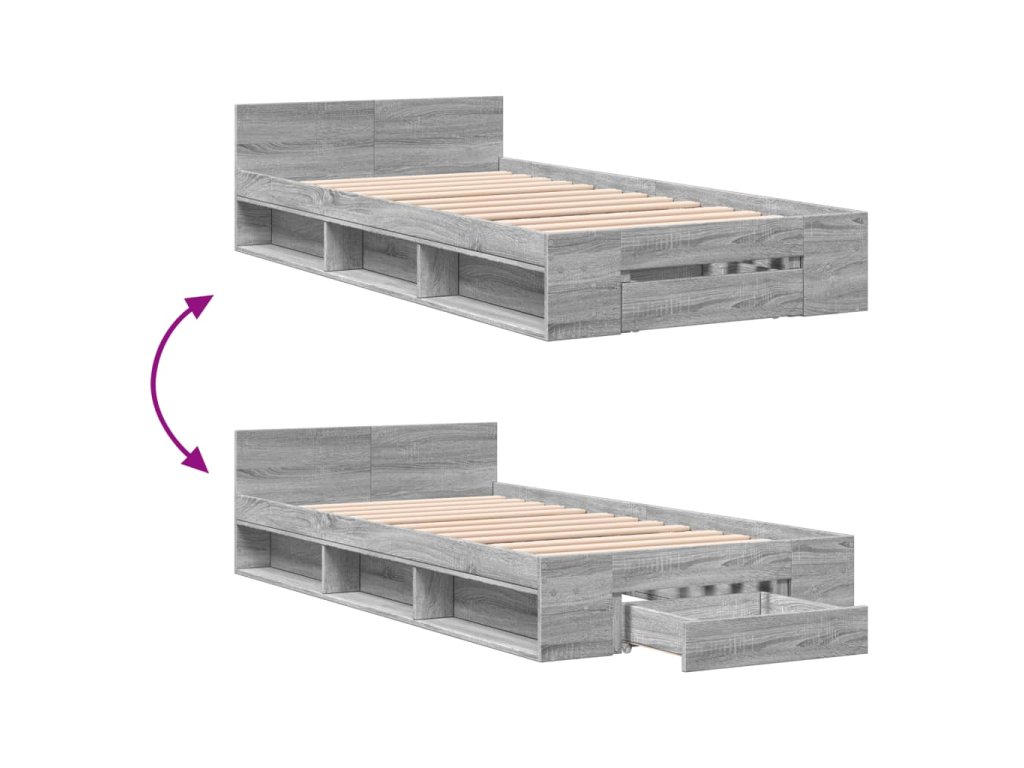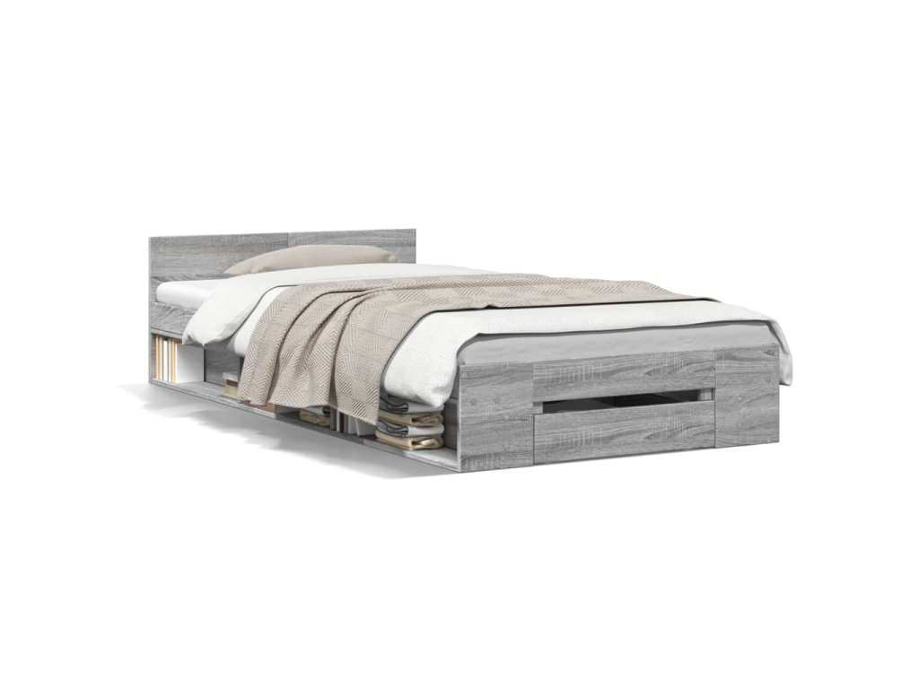 Rám postele se zásuvkou šedý sonoma 100x200 cm kompozitní dřevo 3280795