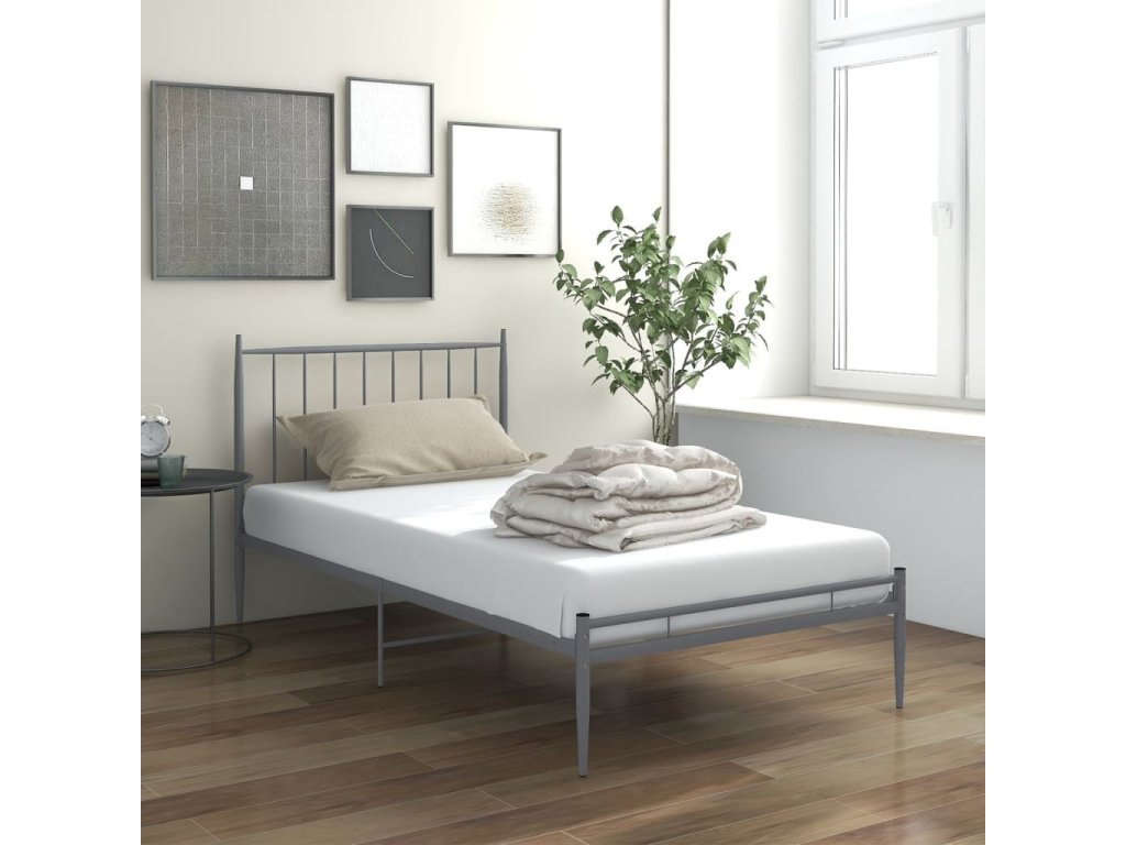 Rám postele šedý kov 100 x 200 cm 325014