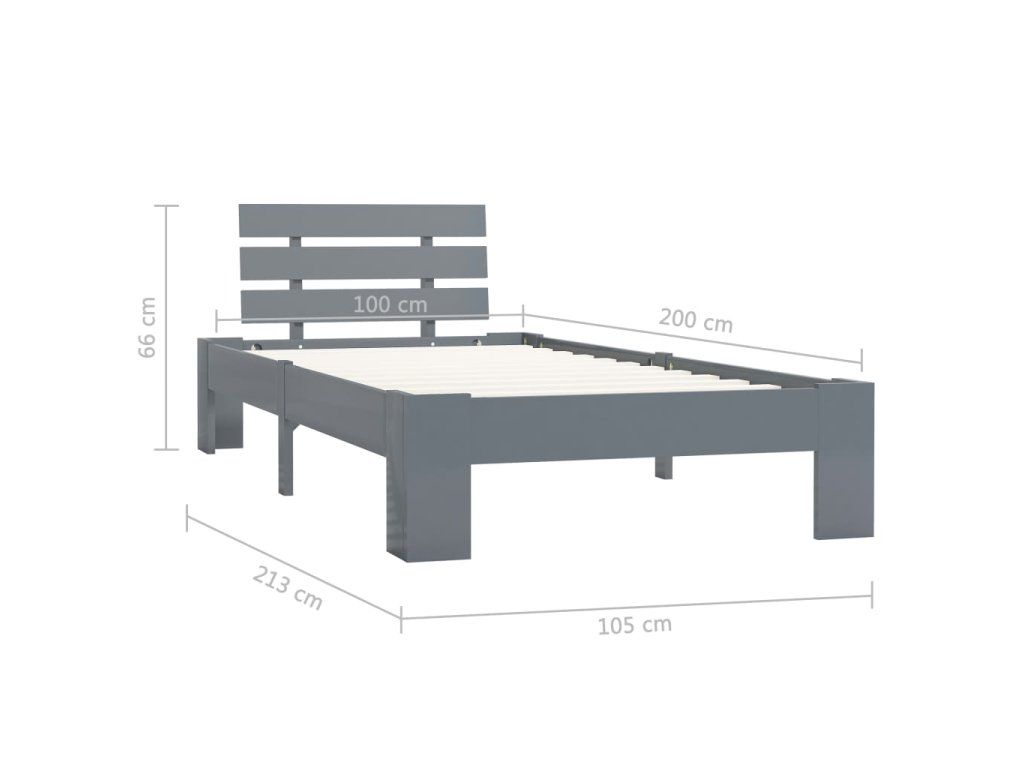 Rám postele šedý masivní borové dřevo 100 x 200 cm 283167