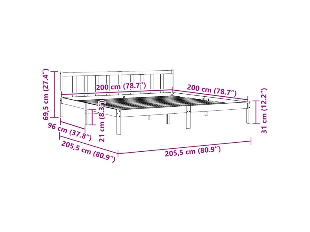 Rám postele je vyrobený z masivního borového dřeva, takže je mimořádně pevný a vyniká svou dlouhou životností. Postelový rám je vhodný pro matraci o rozměrech 200 x 200 cm. Na této posteli si můžete každou noc dopřát kvalitní spánek!