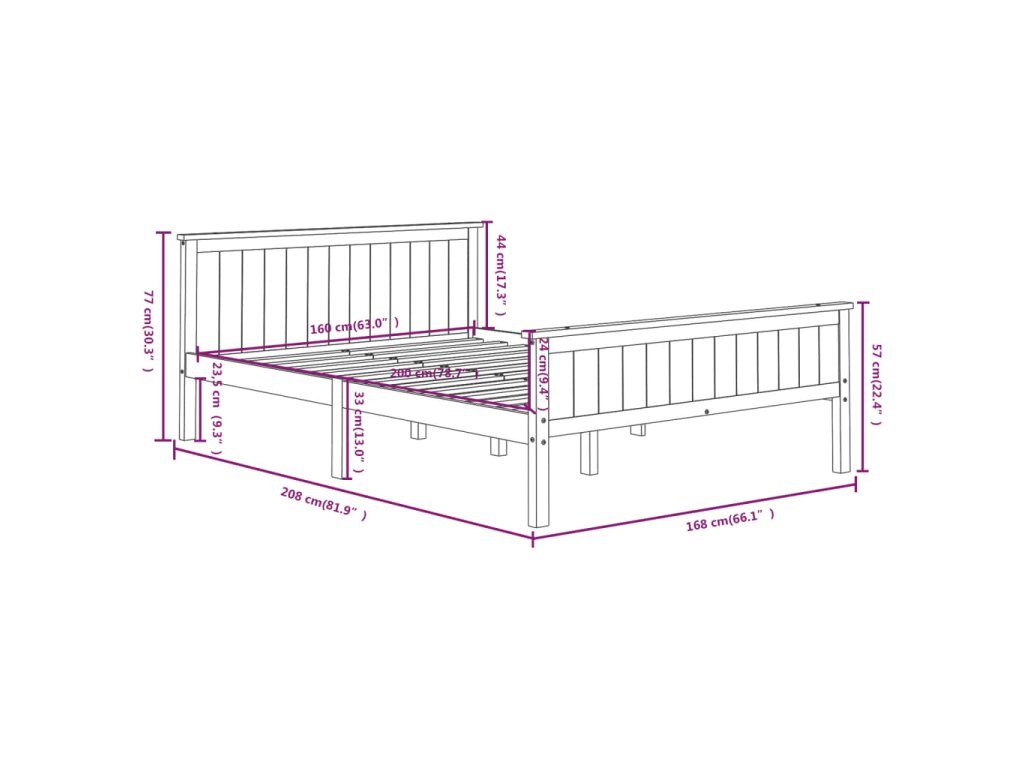 Rám postele šedý masivní borovice 160 x 200 cm 322206