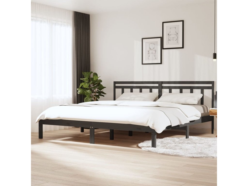 Rám postele šedý masivní borovice 200 x 200 cm 3100611
