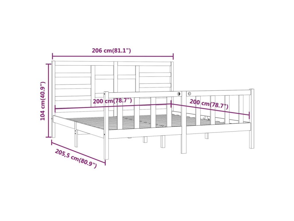 Rám postele šedý masivní borovice 200 x 200 cm 3107635