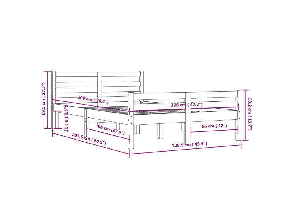 Rám postele šedý masivní dřevo 120 x 200 cm 814816
