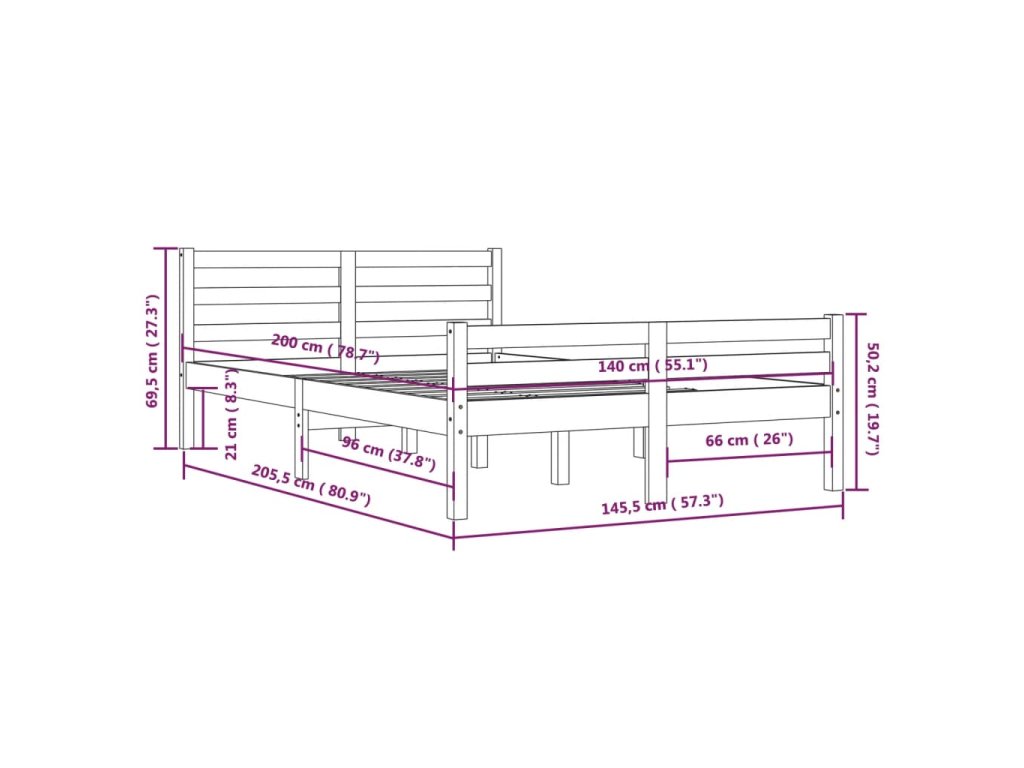 Rám postele šedý masivní dřevo 140 x 200 cm 814821