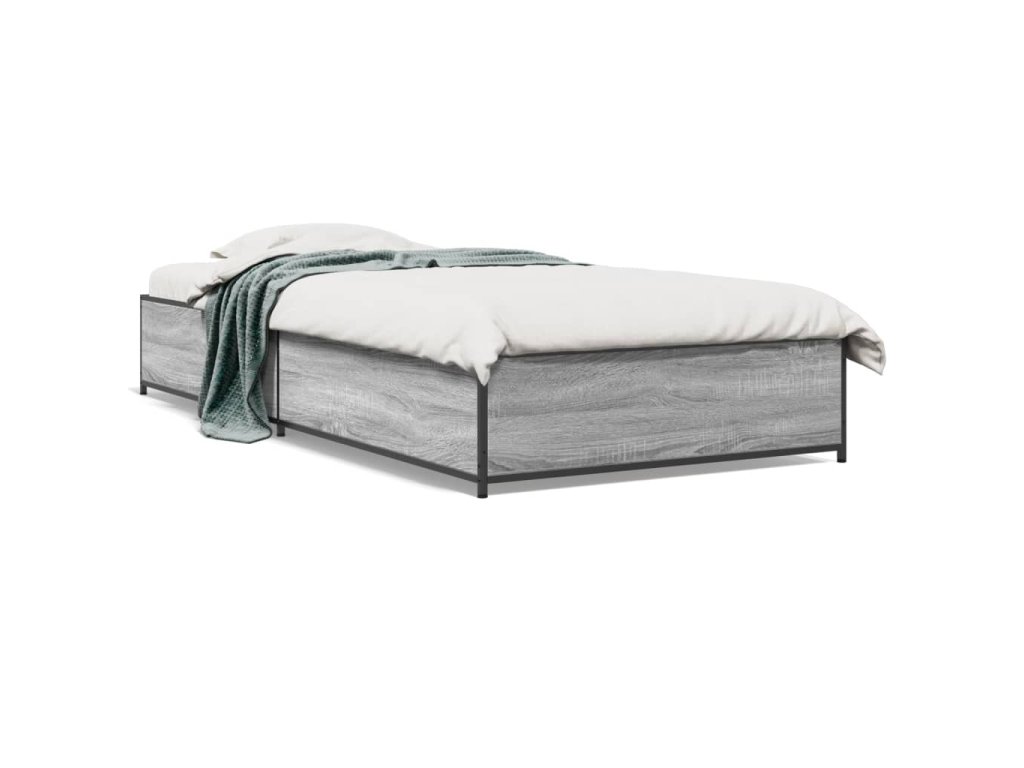 Rám postele šedý sonoma 100 x 200 cm kompozitní dřevo a kov 845109