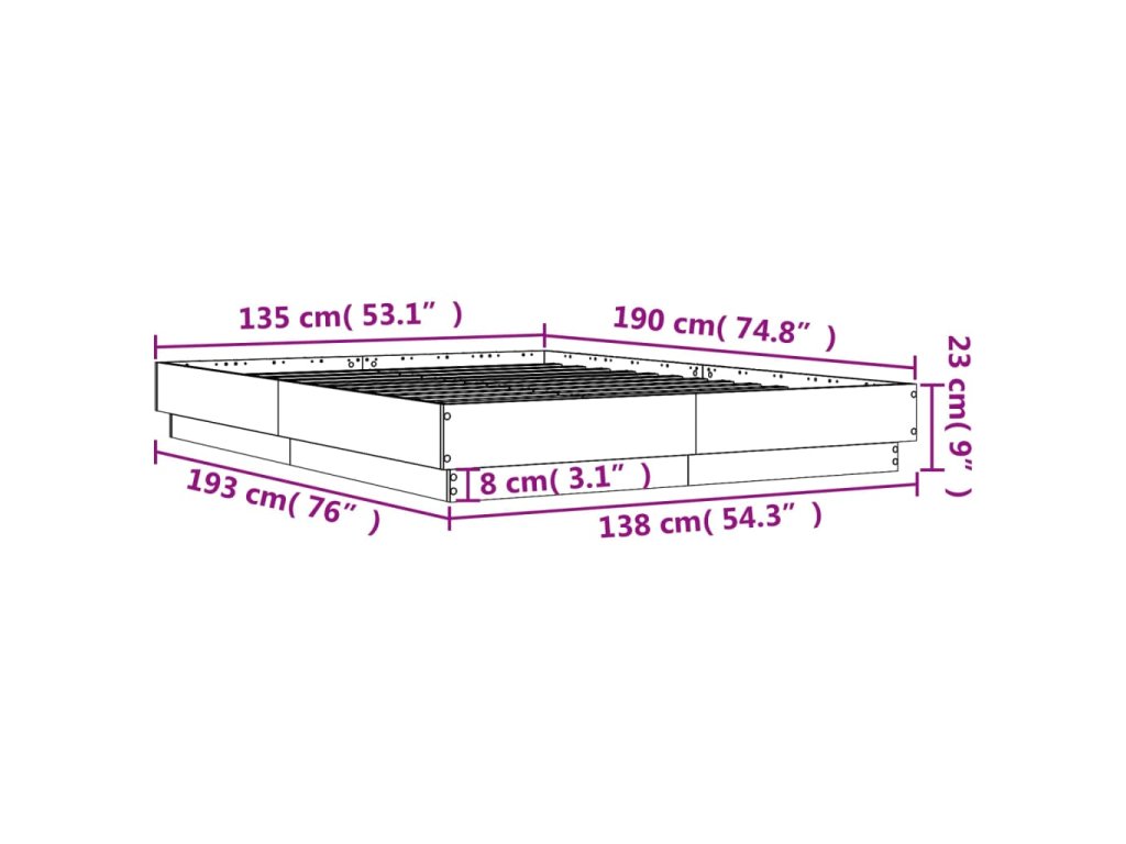 Rám postele šedý sonoma 135 x 190 cm kompozitní dřevo 3209882