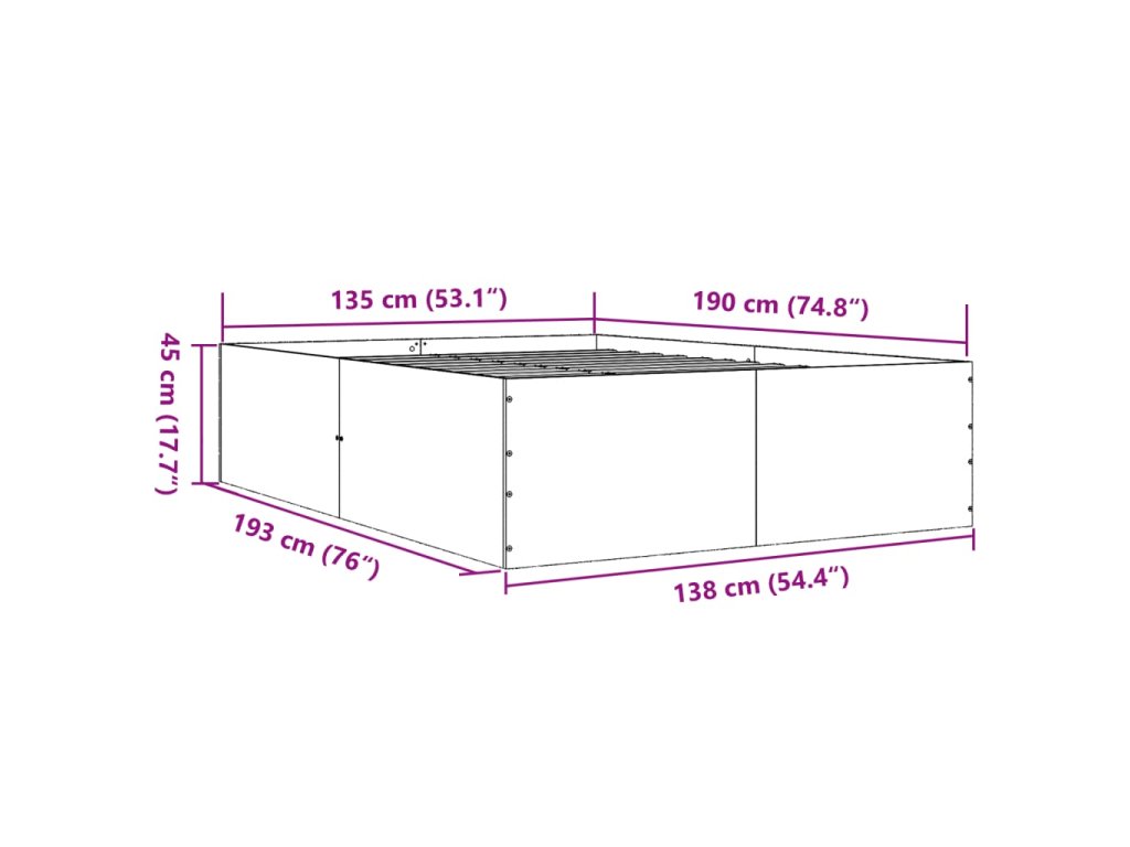 Rám postele šedý sonoma 135 x 190 cm kompozitní dřevo 3280949