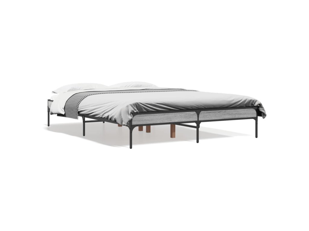Rám postele šedý sonoma 140 x 190 cm kompozitní dřevo a kov 845039