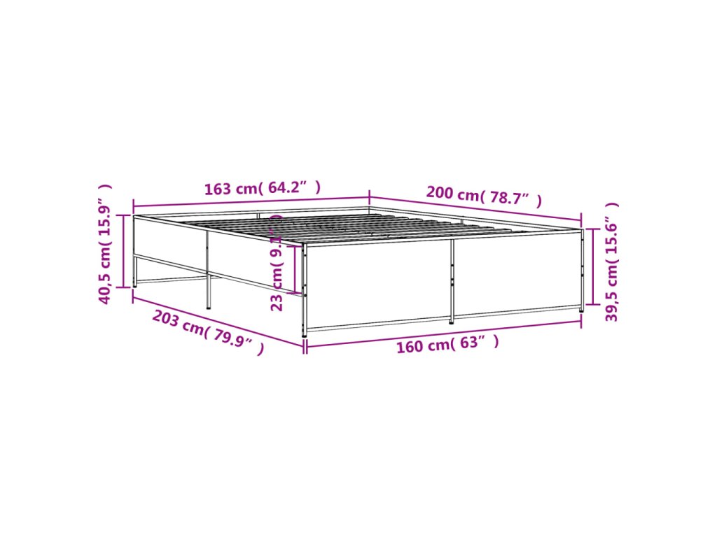 Rám postele šedý sonoma 160 x 200 cm kompozitní dřevo a kov 3279880