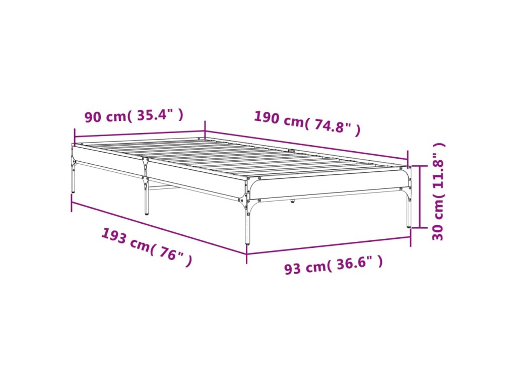 Rám postele šedý sonoma 90 x 190 cm kompozitní dřevo a kov 845054