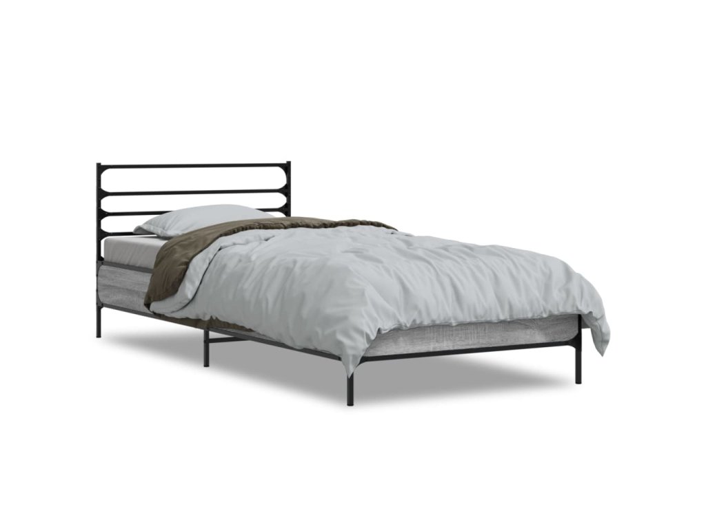 Rám postele šedý sonoma 90 x 200 cm kompozitní dřevo a kov 845585
