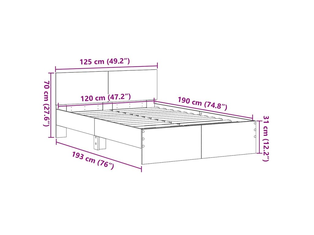 - Velikost matrace: Krátká malá dvojpostel (120 cm x 190 cm nebo 47" x 75")