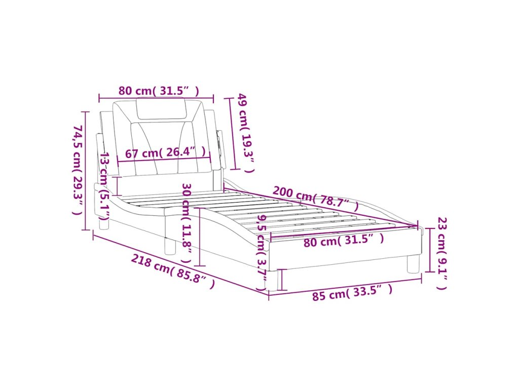 - Celkové rozměry: 218 x 85 x 74,5 cm (D x Š x V)