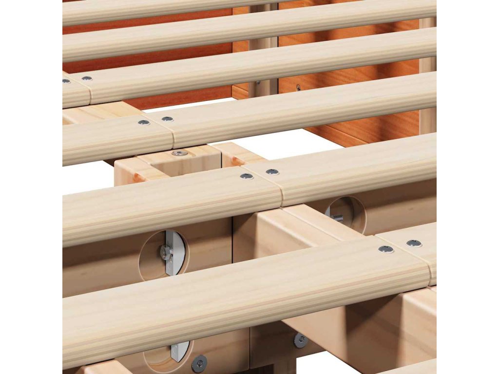 - Masivní borové dřevo: Rám postele je vyroben z odolného masivního borového dřeva, co dodává teplo a eleganci. Tento materiál zajišťuje atraktivní design a dlouhověkost pro pohodlný spánek po dlouhá léta.