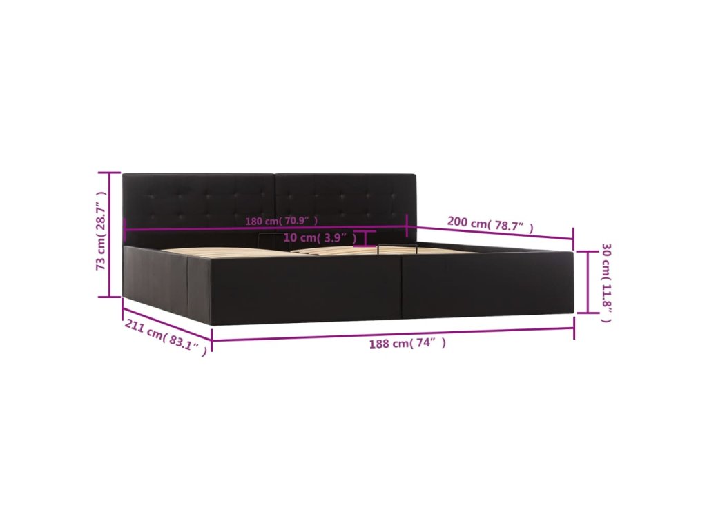 Rám postele zvedací úložný prostor černý umělá kůže 180x200 cm 285515
