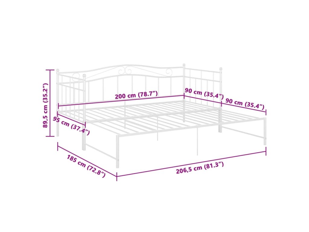 Rám vysouvací postele/pohovky bílý kovový 90 x 200 cm 324783