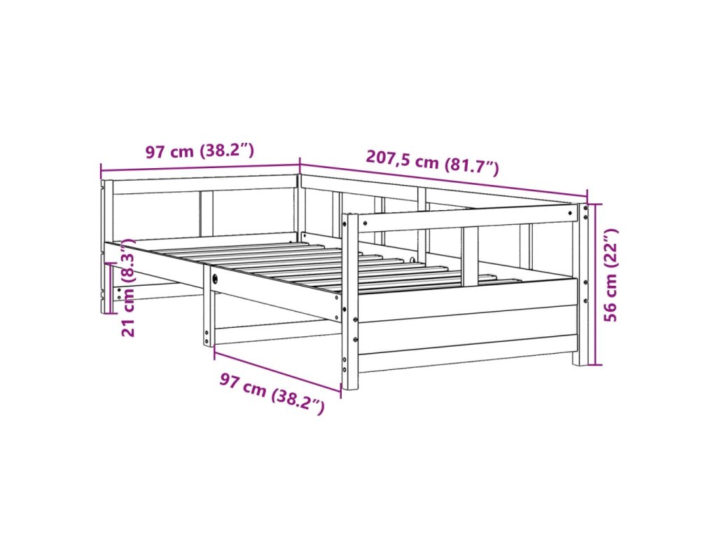 - Rozměry: 207,5 x 97 x 56 cm (D x Š x V)