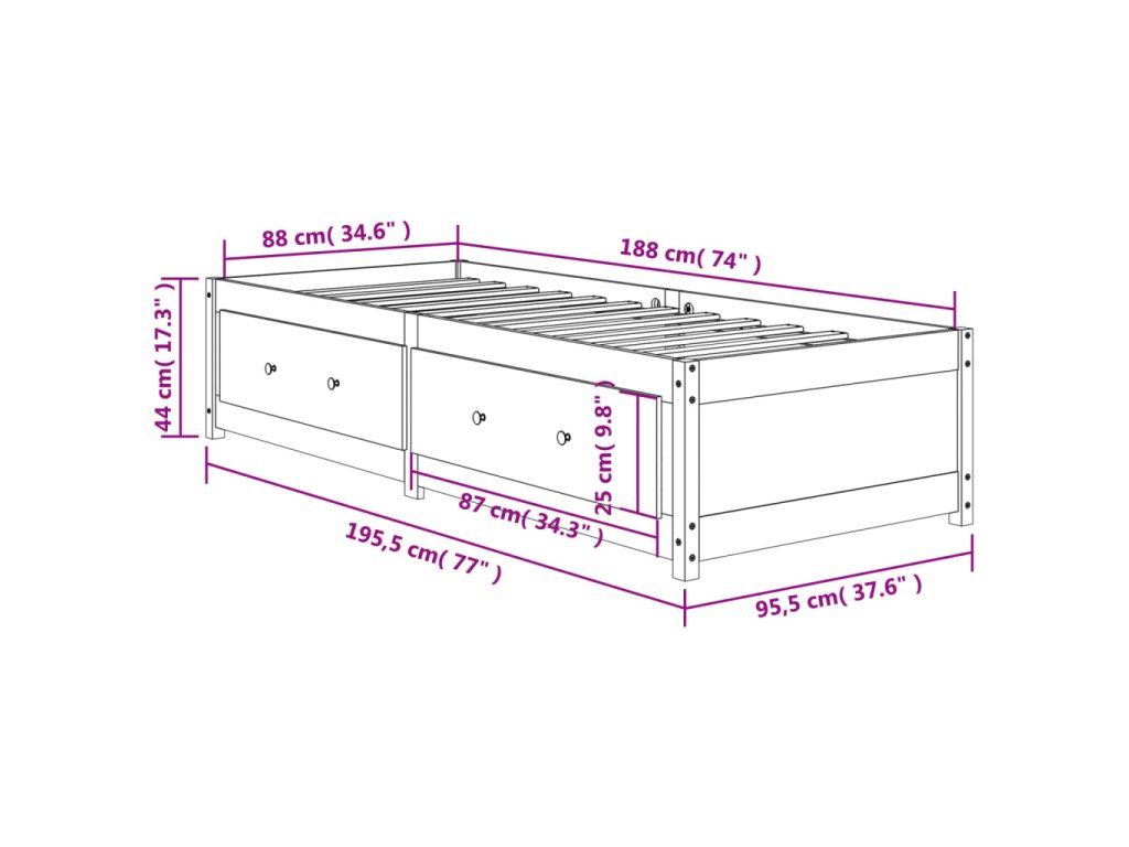 - Vhodné rozměry matrace: 90 x 190 cm (Š x D) (matrace není součástí balení)