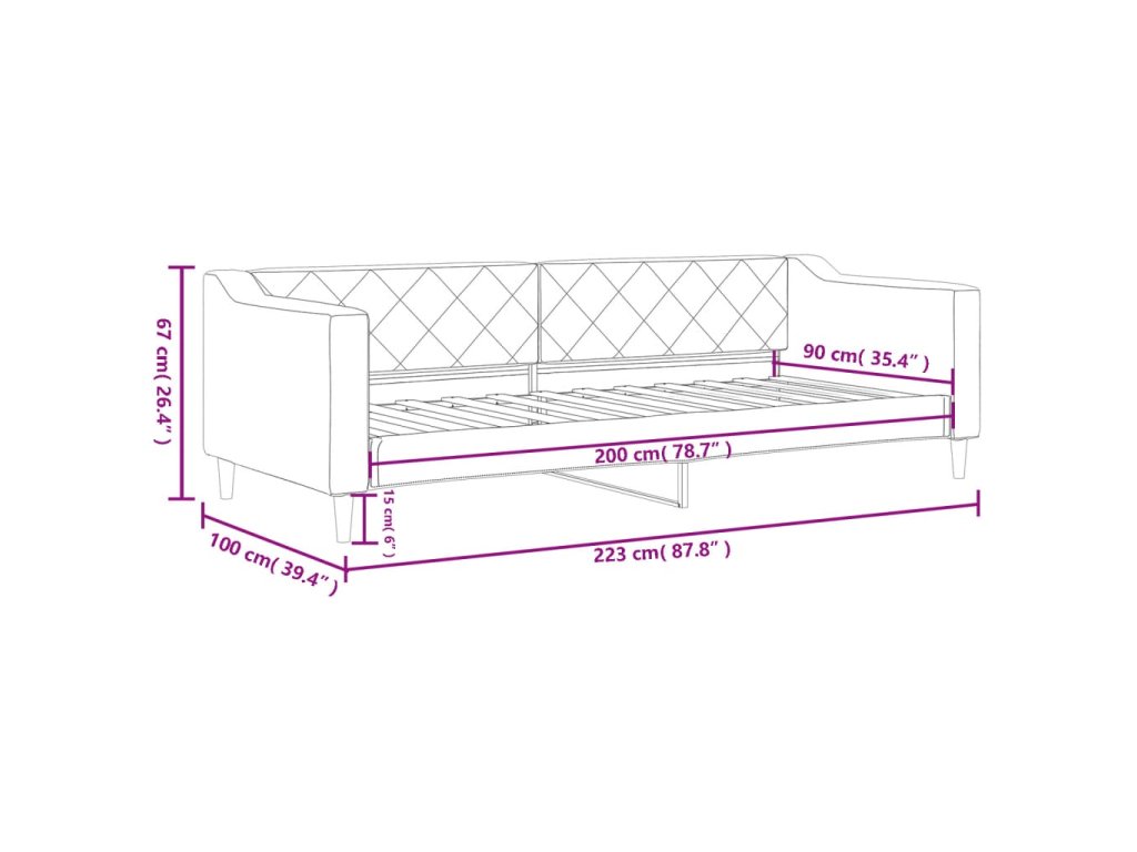 - Rozměry sedáku: 90 x 200 cm (Š x D)