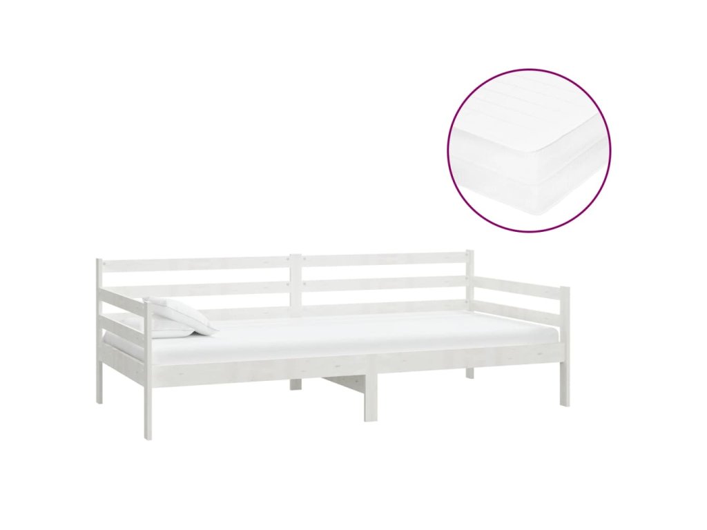 Válenda s matrací 90 x 200 cm bílá masivní borové dřevo 3083595