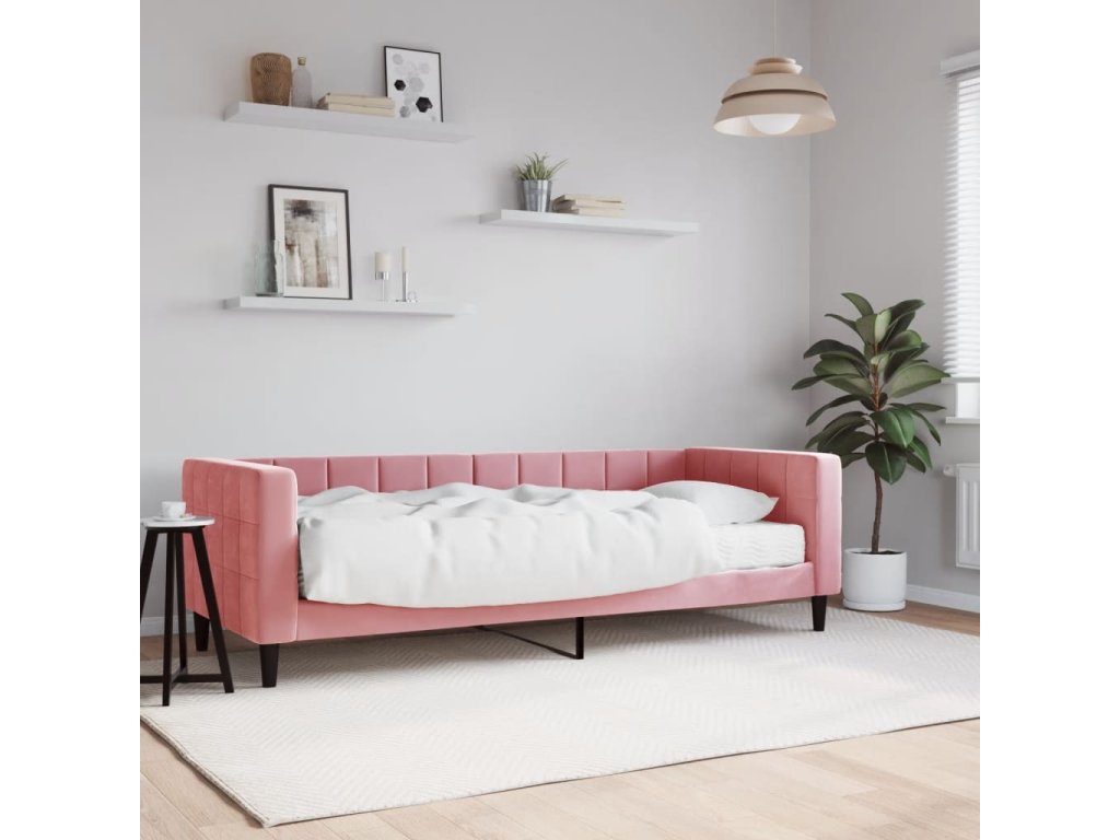 Válenda s matrací růžová 80 x 200 cm samet 3196663