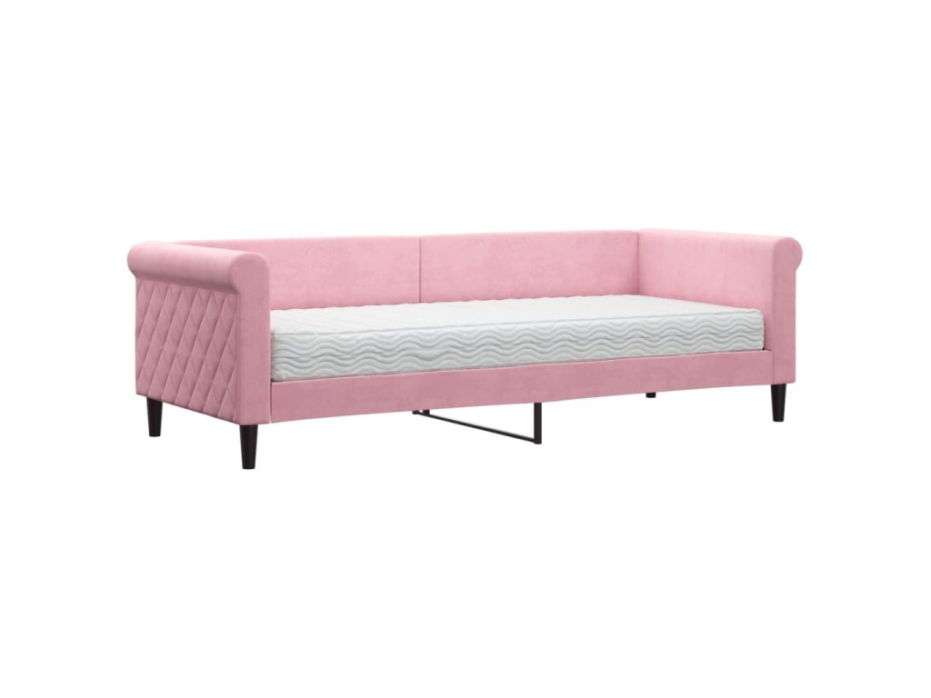 Válenda s matrací růžová 80 x 200 cm samet 3197743