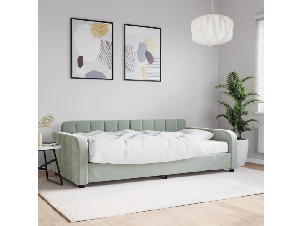 Válenda s matrací světle šedá 100 x 200 cm samet 3196912
