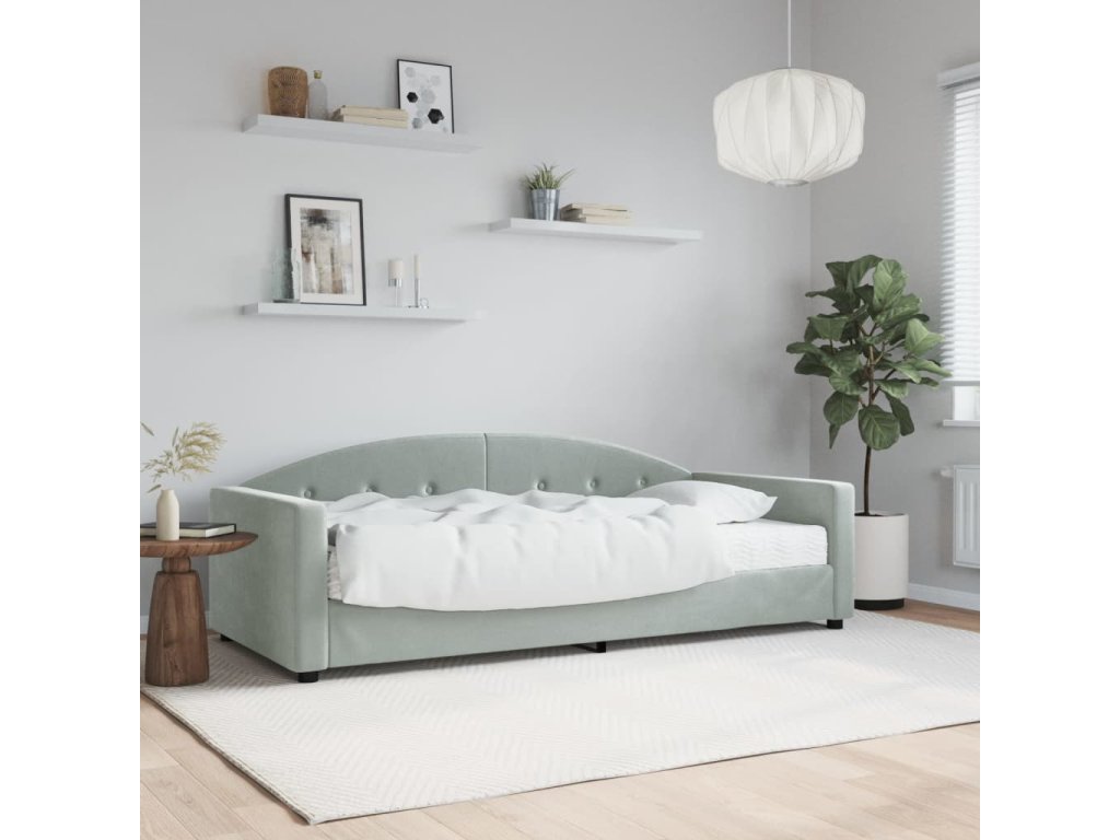Válenda s matrací světle šedá 90 x 200 cm samet 3197277