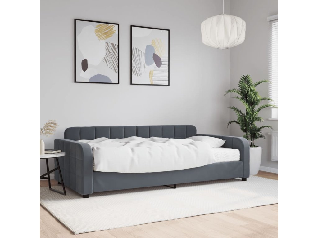 Válenda s matrací tmavě šedá 100 x 200 cm samet 3196913