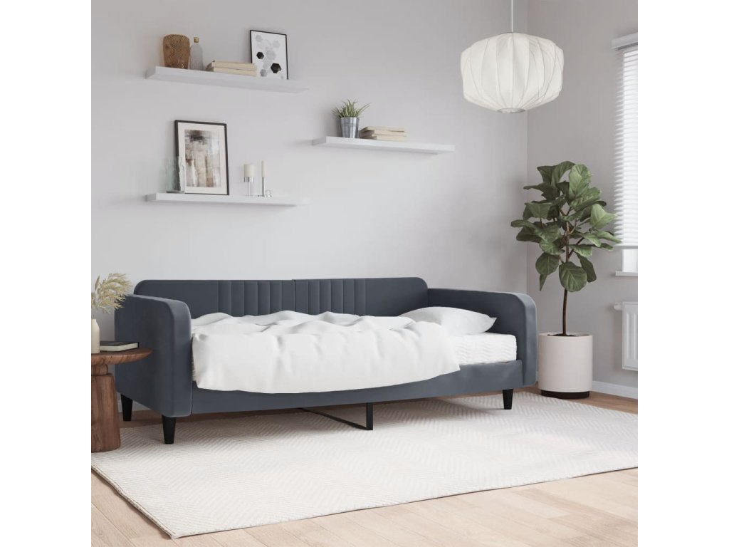 Válenda s matrací tmavě šedá 100 x 200 cm samet 3197047