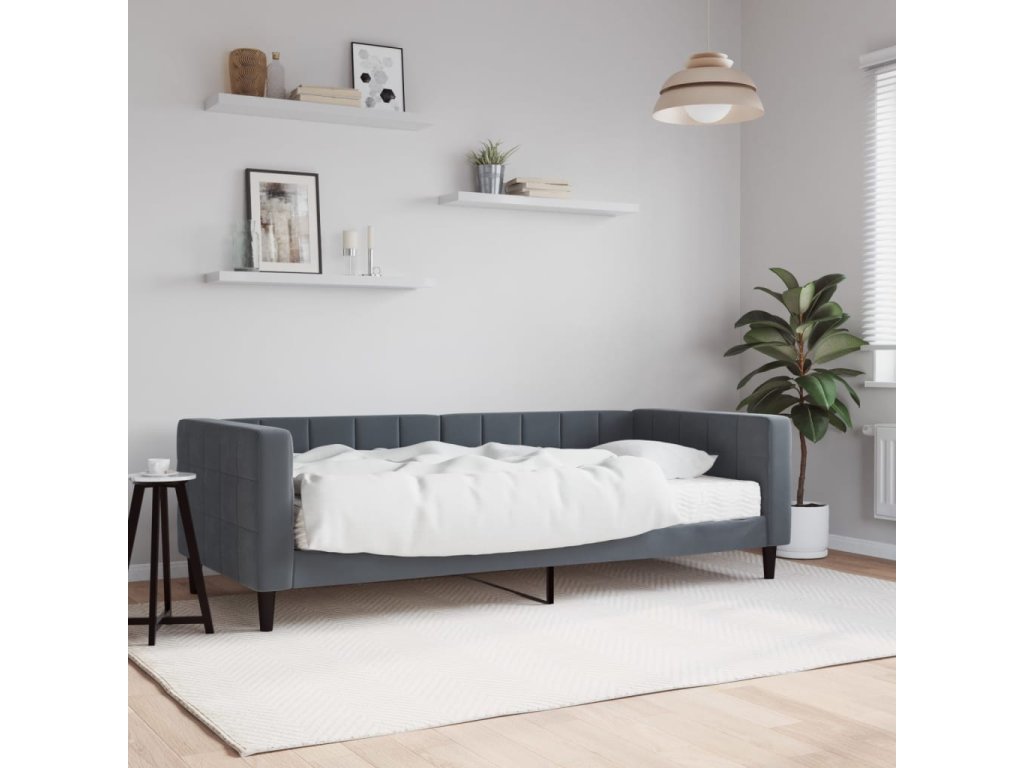 Válenda s matrací tmavě šedá 90 x 190 cm samet 3196681