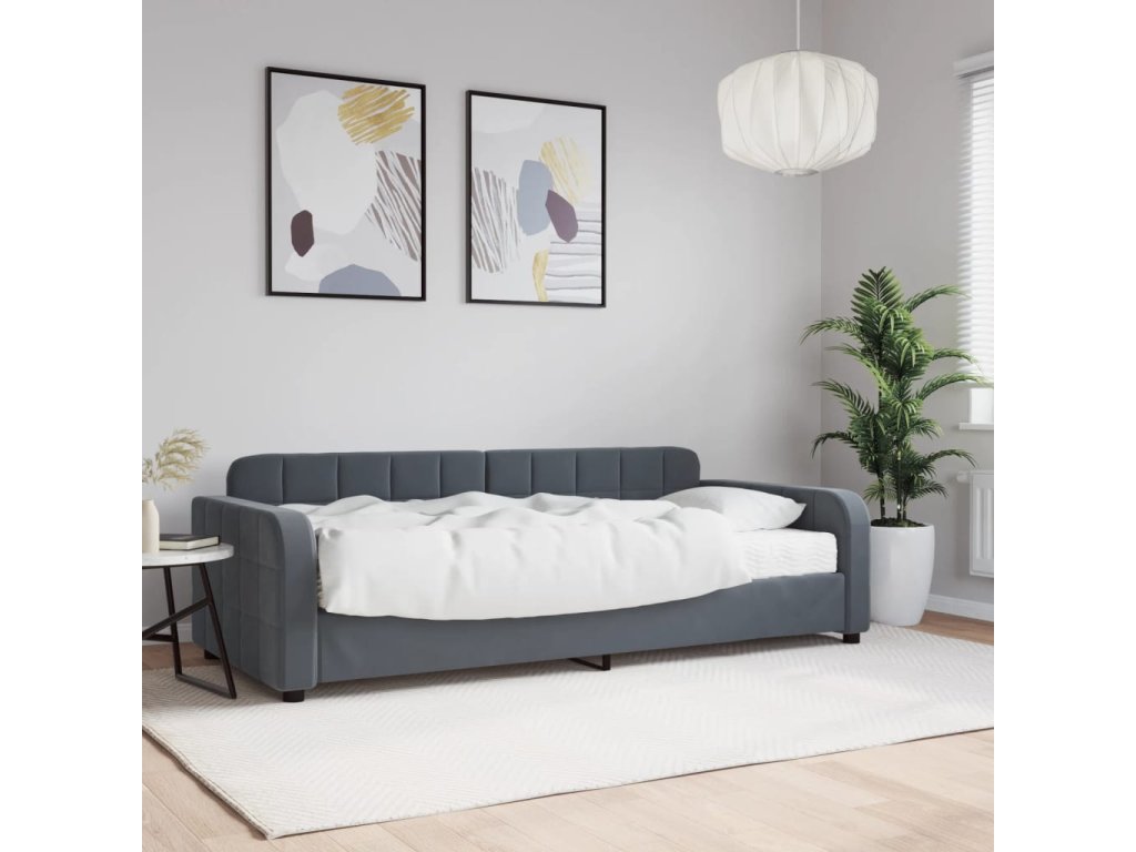 Válenda s matrací tmavě šedá 90 x 190 cm samet 3196919
