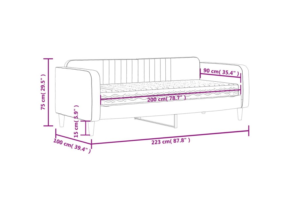 Válenda s matrací tmavě šedá 90 x 200 cm samet 3197040
