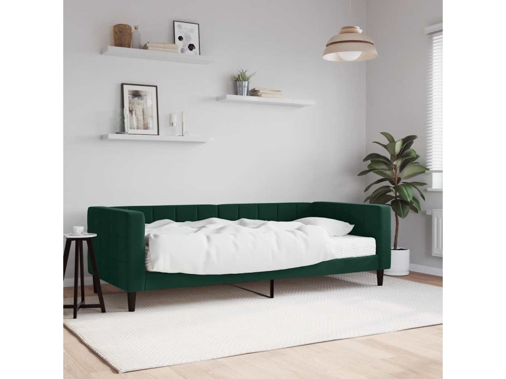 Válenda s matrací tmavě zelená 90 x 200 cm samet 3196669