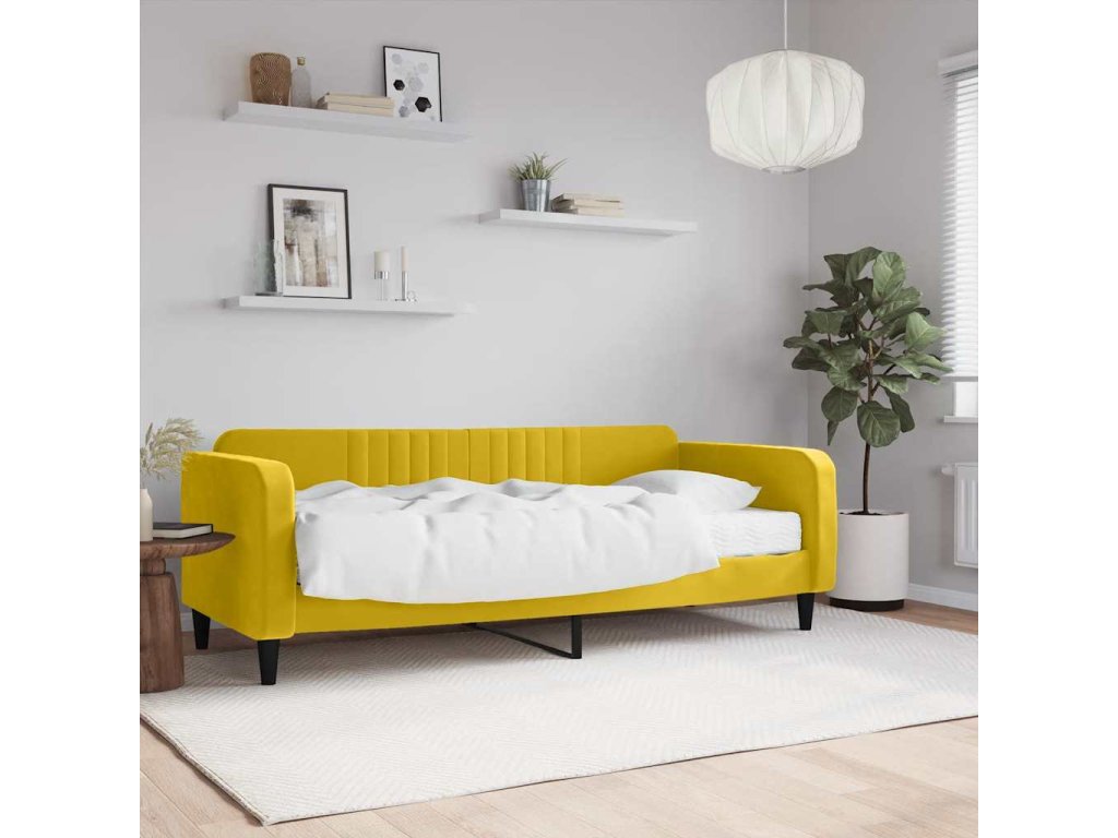 Válenda s matrací žlutá 90 x 200 cm samet 3197044