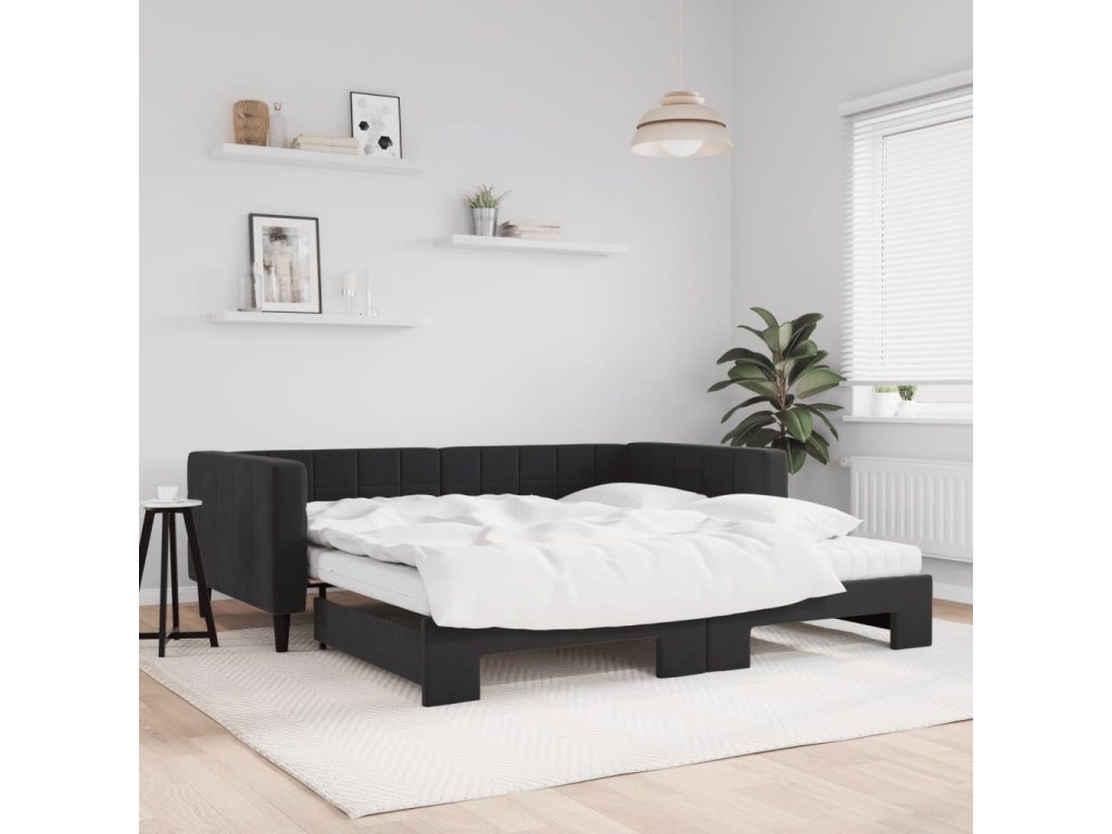 Válenda s přistýlkou a matracemi černá 100 x 200 cm samet 3196726