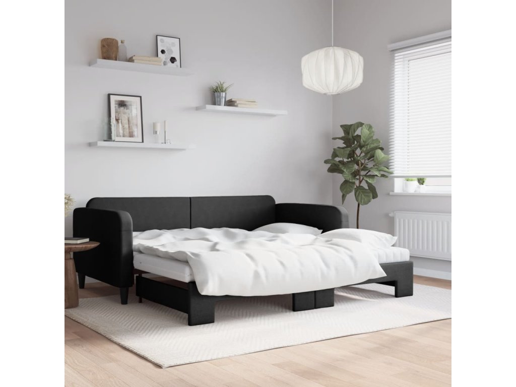 Válenda s přistýlkou a matracemi černá 100 x 200 cm textil 3196841